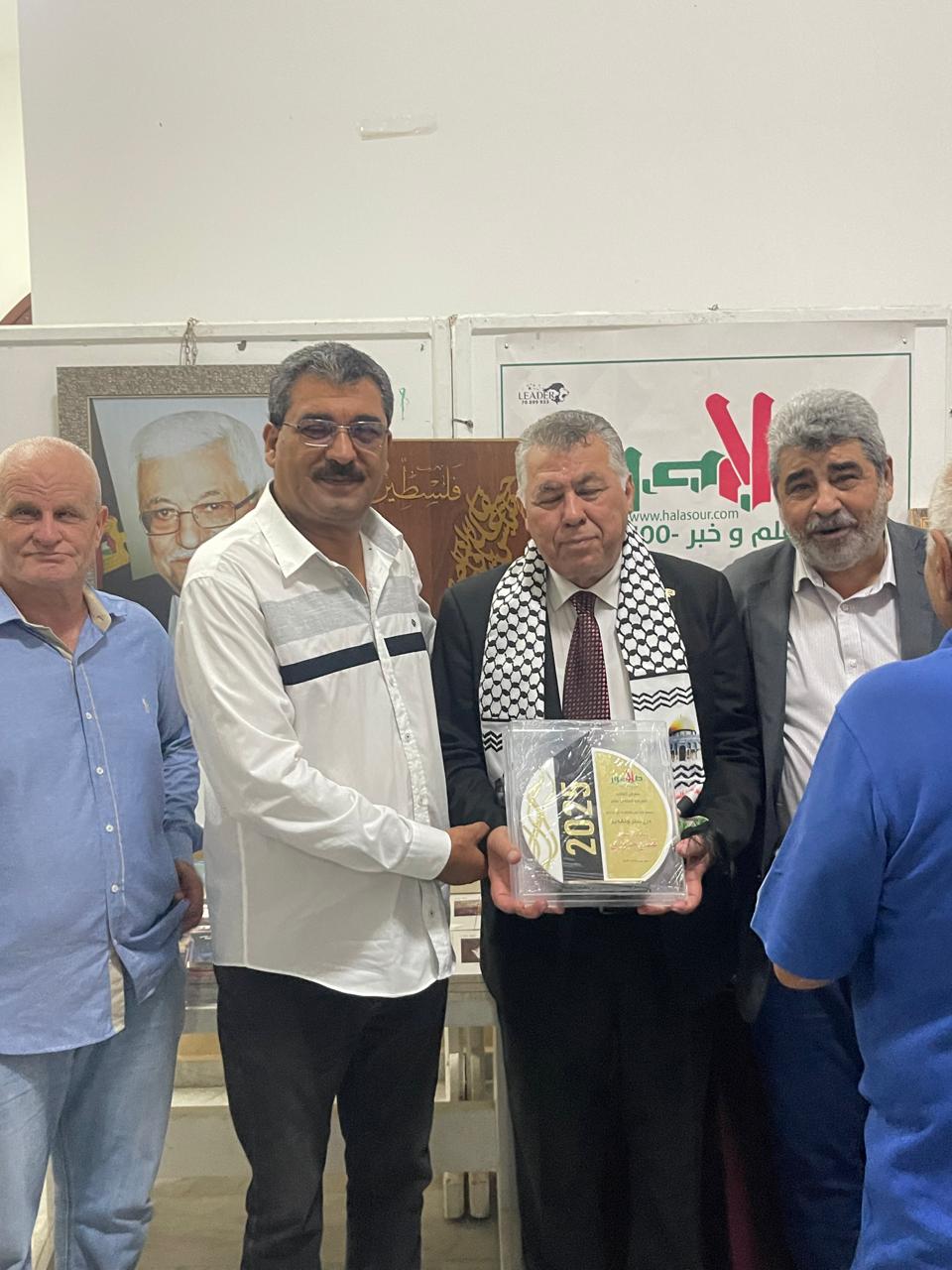 تكريم حاشد للسفير نظمي حزوري في جناح فلسطين بمعرض الكتاب العربي ٠٠كتب محمد درويش ٠٠٠٠تم تكريم السفير الفلسطيني السابق في إقليم كردستان العراق السيد نظمي حزوري وذلك في جناح فلسطين في معرض الكتاب العربي الحادي عشر الذي تقيمه هلا صور في مركز ابحار الثقافي بمجمع باسل الأسد في مدينة صور بجنوب لبنان وذلك بدعوة من جمعية هلا صور الثقافية الاجتماعية و رئيس الجمعية مؤسس المعرض الدكتور عماد سعيد وقد حضر حشد من الشخصيات اللبنانية الفلسطينية٠ وقدمت للحفل بعد النشيد الوطني، اللبناني، والفلسطيني الشاعرة المخرجة زينات سلمان بكلمة اشادت فيها بالدبلوماسي المثقف والمناضل الحقيقي صاحب السيرة والمسيرة الحافلة بالعطاء السفير نظمي حزوري ٠واشارت الى أهمية العلاقات اللبنانية الفلسطينية التي اقامها حزوري وقالت ان هلا صور تكرمه بدرع مميز وهي تحمل له كل التقدير والاحترام ٠ بينما تحدث الدكتور سعيد حول أهمية السفير حزوري ودوره المميز في الميدان الدبلوماسي والثقافي والوطني، والعربي وعلاقته المميزة مع هلا صور ومعرض الكتاب وجناح فلسطين ٠شاكرا حضوره ودعمه المتواصل لمعرض وجناح فلسطين ٠ وقد تسلم السفير حزوري درع التكريم٠ ورد بكلمة اشاد فيها بالدكتور سعيد ودوره في دعم القضية الفلسطينية وأيمانه الراسخ بعدالة القضية وحق الشعب الفلسطيني في سبيل إقامة الدولة الفلسطينية المستقلة وعاصمتها القدس الشريف وعودة الشعب الفلسطيني الى أرضه ٠ثم جرى التقاط الصور التذكارية مع حزوري وتوزيع الكوفيات الفلسطينية على الحضور والشخصيات٠ وقد حضر أيضا إلى جانب السفير حزوري كل من مستشار العلاقات في سفارة فلسطين في لبنان سمير ابو عفش والمستشار الثقافي، في،السفارة الفلسطينية احمد الحلبي والحاج ابو رشيد مسؤول اللجنة الشعبية في المخيم البرج الشمالي ومسؤول الاتحاد العام لعمال فلسطين غسان بقاعي والأخ منعم عوض والأخ جمال قشمر واللوا؛ ابو باسل شهاب والأخ احمد محمد زيداني وجمعية التواصل اللبناني الفلسطيني وشخصيات وفعاليات وقيادات وإعلاميين وجمهور من المخيمات الفلسطينية والبلدات والتجمعات من مختلف المناطق اللبنانية٠ ٠